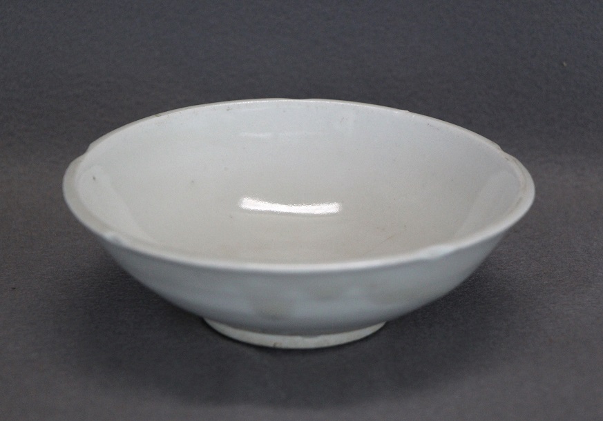 優美な白色を呈した白磁碗です。口縁部分には等間隔で凹部がもうけられ、輪花をモチーフにしていることがわかります。